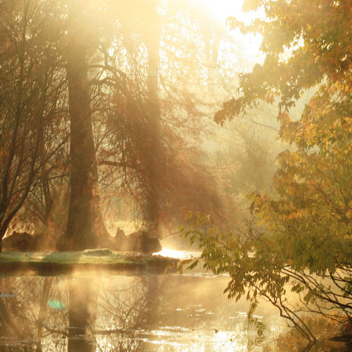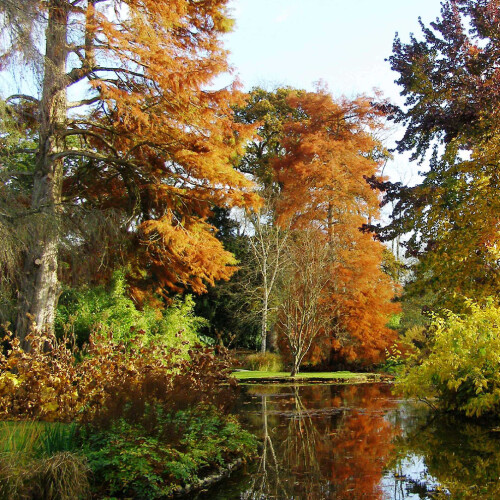 Even on a dull, cold day the water reflects an array of golden brassy shades. The red tones of the Swamp Cypress shine and instantly warm up the garden, carefully complementing the leaves. The leaves glow care freely, bouncing along the floor with the light Autumn breeze, shimmering a light copper burn.