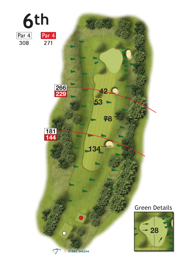 Another short par 4 with a wide fairway sloping to the right, two bunkers on the right, one short and one near the green should not be too demanding to avoid. A tee shot favouring the left side of the fairway should give the chance for a birdie on the card.
