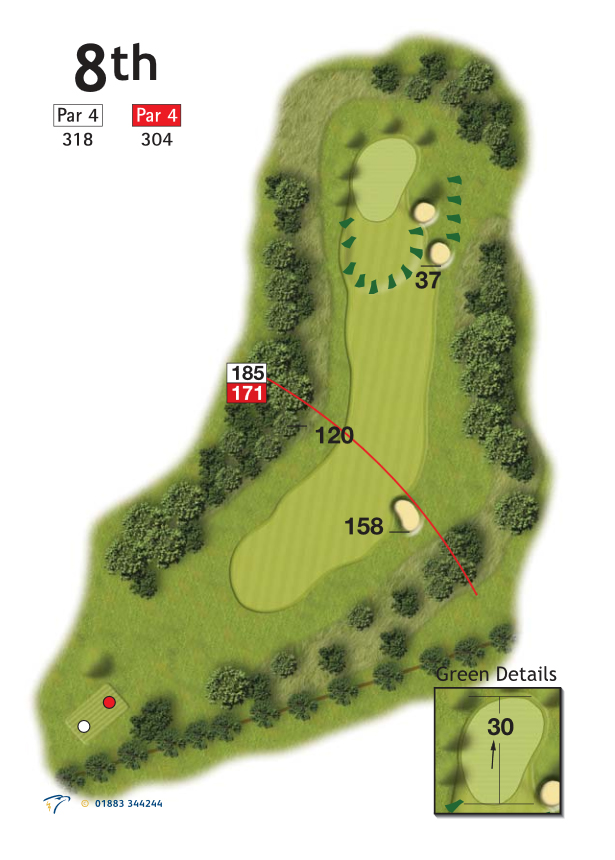A testing par four, which doglegs around to the left, making the selection of the tee shot of paramount importance, lay up short of the hedge which borders the right of the hole to leave a short approach. A tight line to the left of the fairway will make an easier approach to avoid the two bunkers on the right of the green.